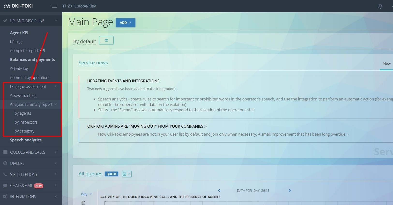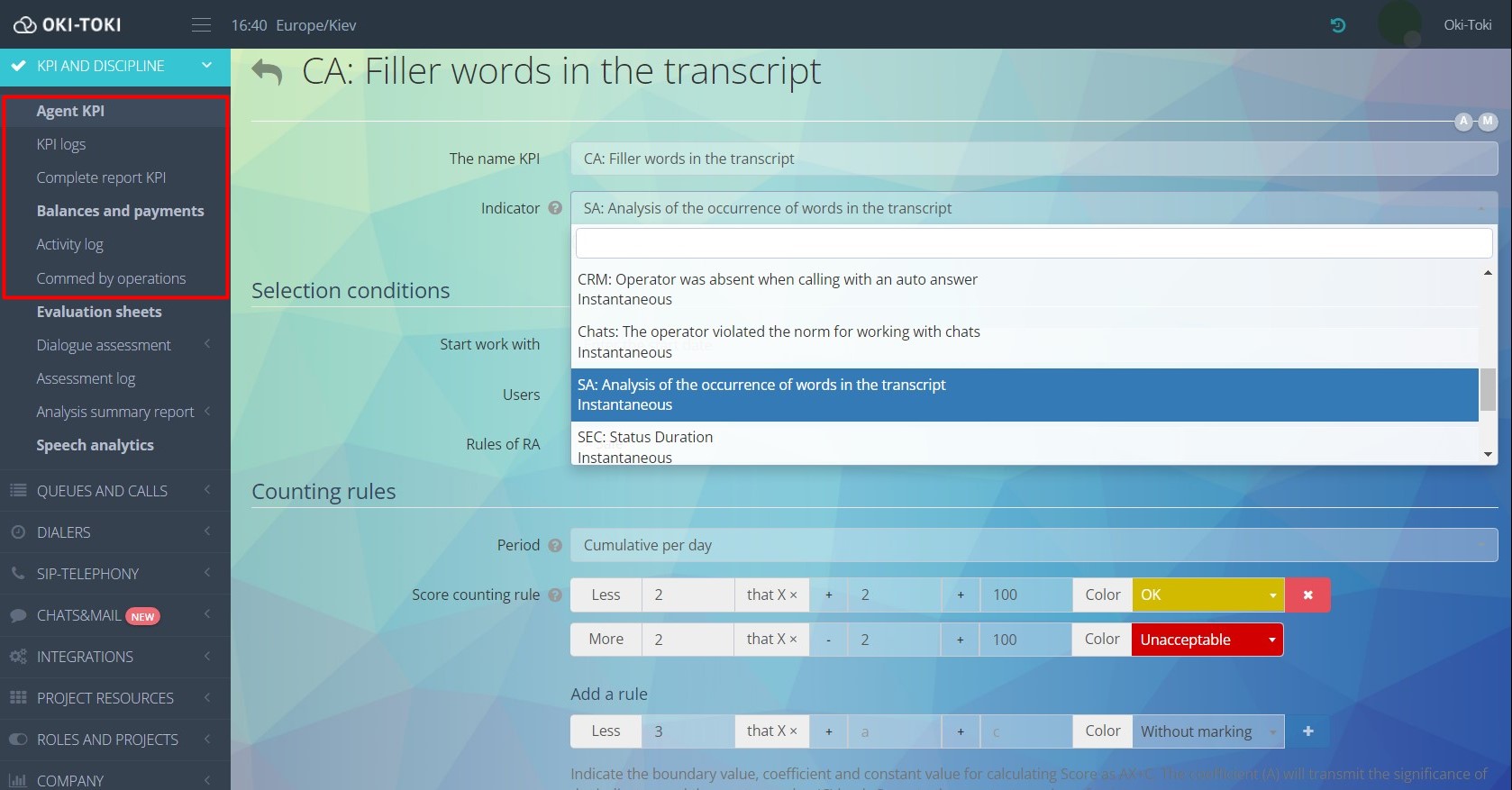 Bu yıl, agent kontrolüne yönelik ayrı bir bölüm oluşturuldu – “KPI ve Disiplin”. Burada farklı araçlar toplandı, ana görevleri agent kontrolünü otomatize etmek: