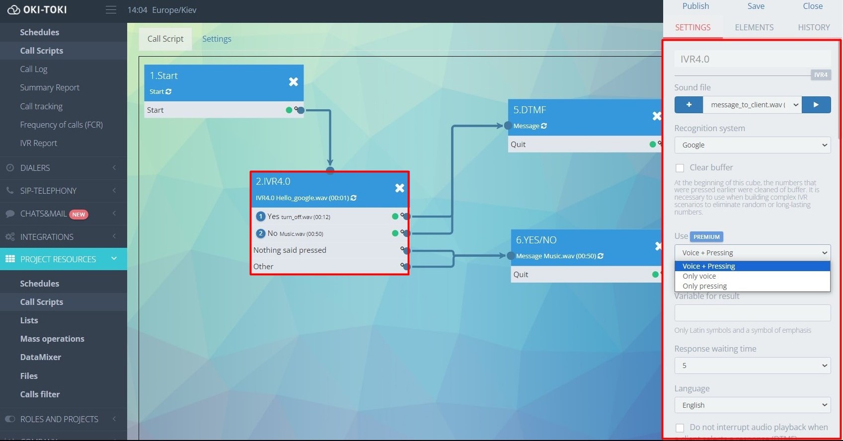 - Evrensel Küp IVR – burada düzeni sağladık! Servisin evrimleşmesiyle birlikte, farklı IVR versiyonları ortaya çıktı, bunlardan üçü (gerçekte dört) vardı. Hepsi kurtulduk ve dördüncü versiyonu (artık tek olan) oluşturduk. Yeni IVR, önceki versiyonlardan biri gibi çalışabilir veya bir hibrid olarak (örneğin, konuşmayı ve tuş basışlarını aynı anda tanıyabilir), Bazı şirketler karmaşık süreçlerde eski etkileşimli menülere sahip kaldı, ancak sadece bunları bozmaktan korktuklarında. Artık sadece yeni küpü oluşturabilirsiniz.
