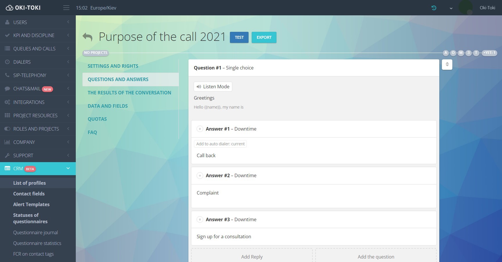 - Görüşme Scriptleri – ona göre scriptler, diyalog senaryoları, agent scriptleri, form içeriği. Ayarlar daha basit, bilgilendirici ve fark edilir derecede daha fazla oldu. Bu araç o kadar büyüktü ki, arayüzü iki kez test etmek ve yeniden işlemek zorunda kaldık. Sonuçtan memnunuz ve umarız siz de beğenirsiniz.