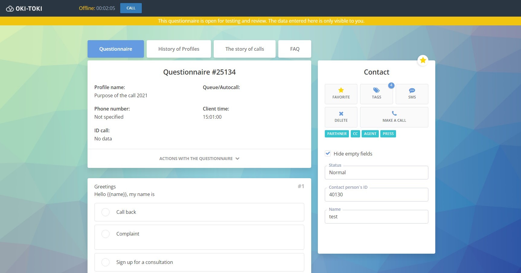 - Müşteri Formu – görüşme scripti kadar karmaşık bir araç. Bununla en çok zorluk yaşadık ve kitlesel testlerde ve hata raporlarında bize yardımcı olan sabırlı müşterilerimize çok teşekkür ederiz. Müşteriler tarafından hala yerine getirilmeyi bekleyen istekler var, ancak şu anda oldukça iyi görünüyorlar.