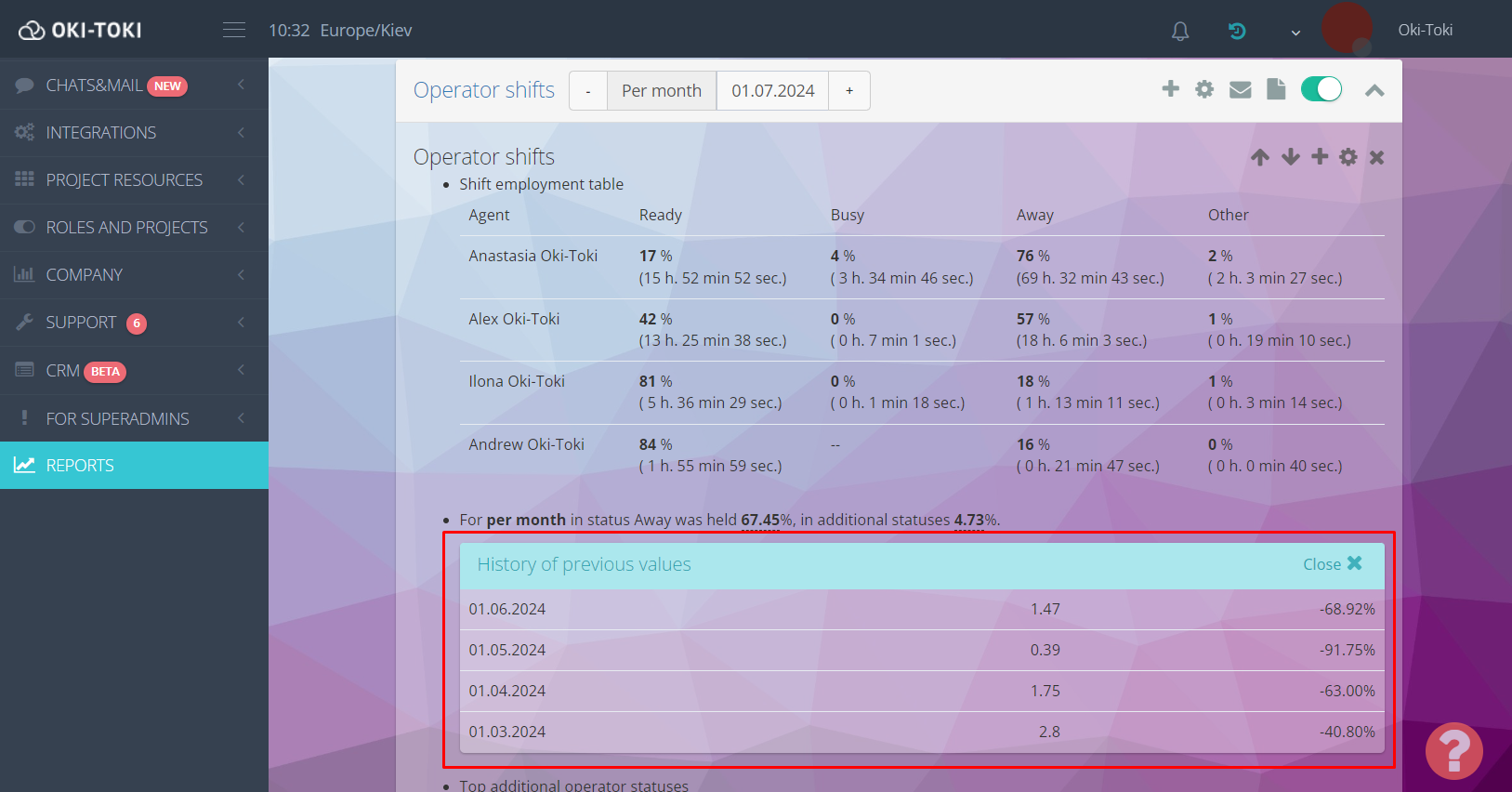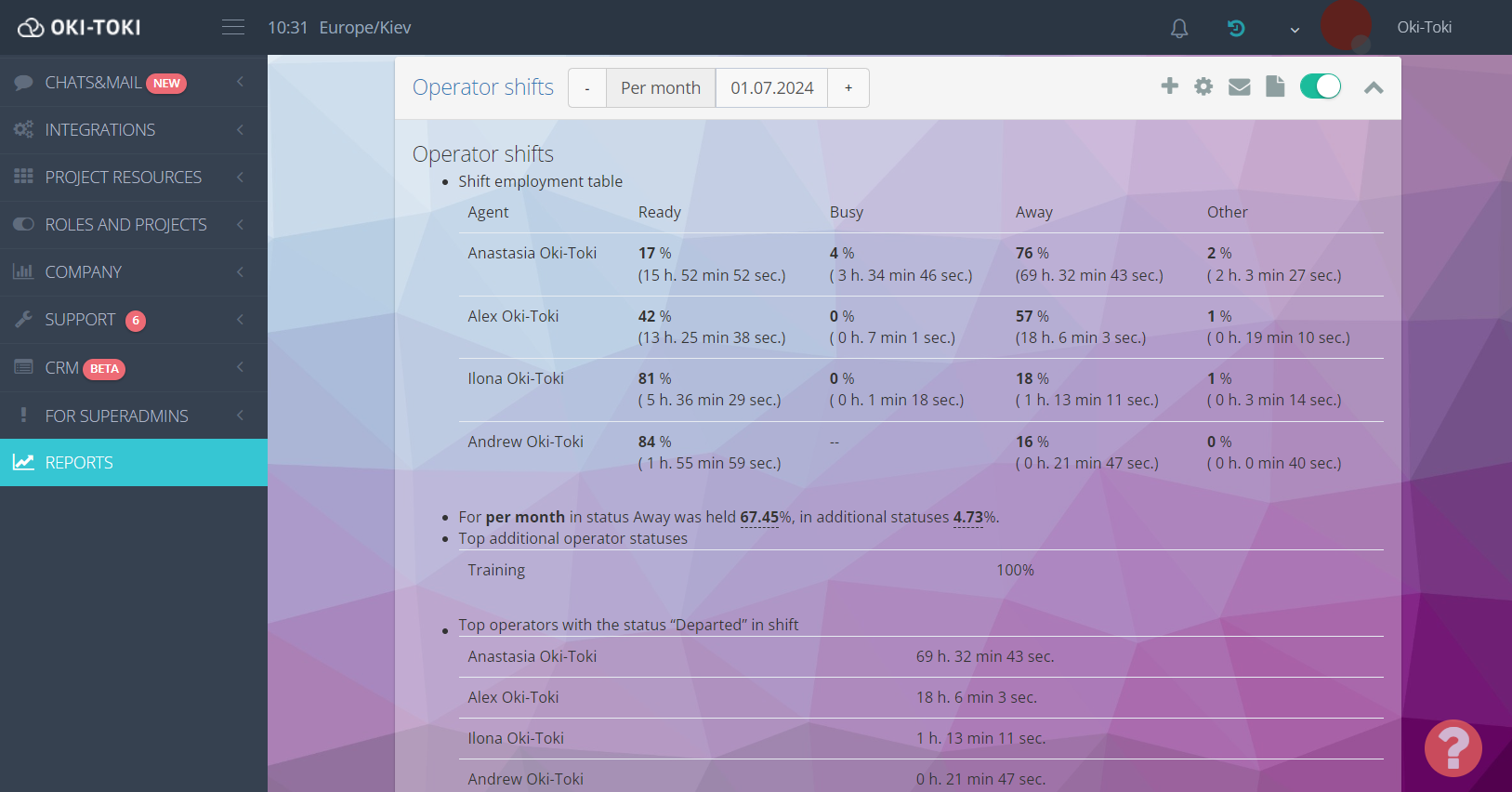 - Yeni bölüm: “Agent Vardiyaları”, bir dönemde agentların ilk ve son durumunu, meşguliyetlerini, etkinliklerini ve daha fazlasını gösteriyor.