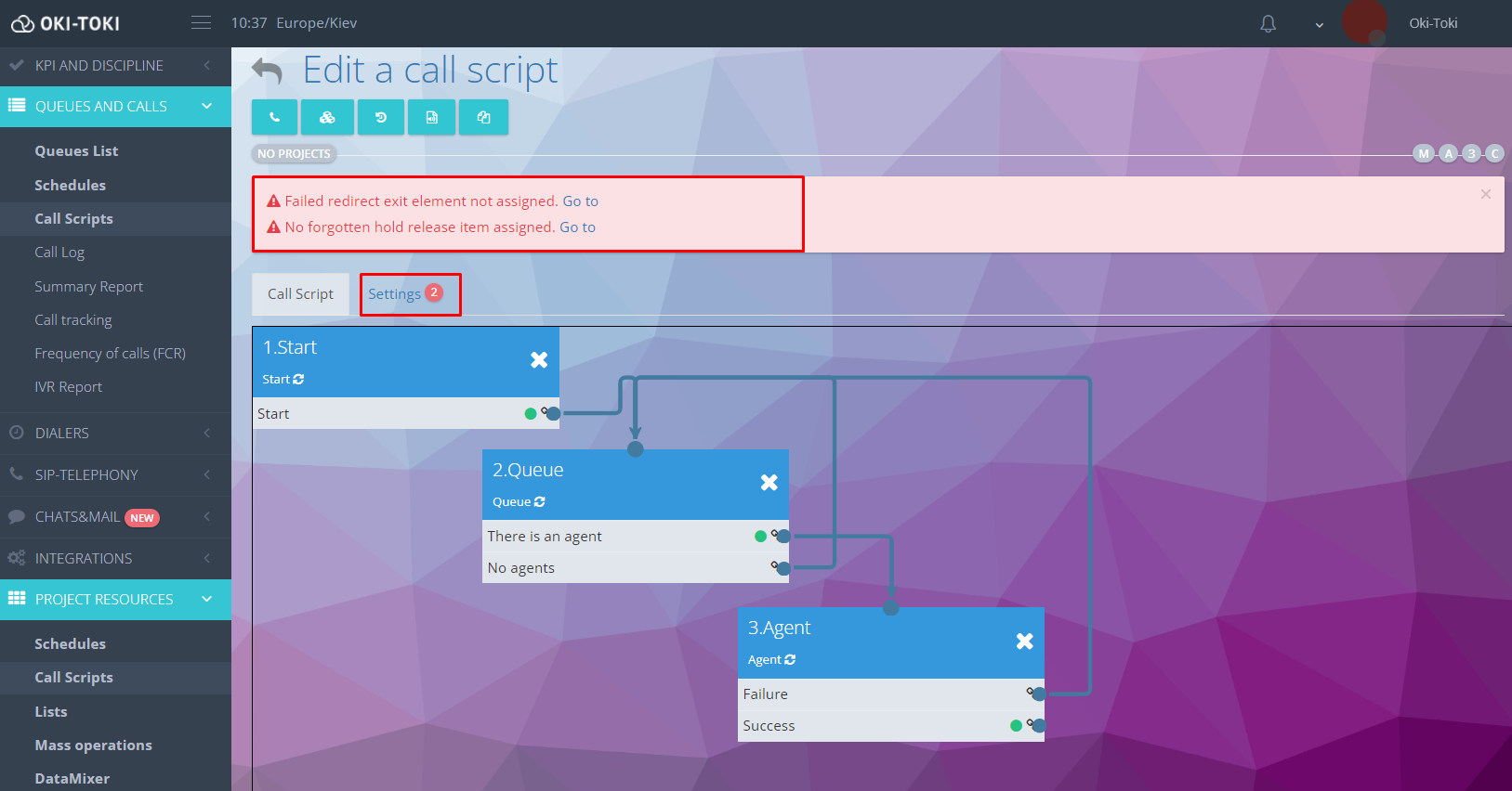 Unutulan bekletmeyi ve başarısız yönlendirmeyi çağrı scripti içine taşıdık. Teknik olarak işleyişe etki etmeyecek, ancak biraz daha düzen getirdi. Bu ayarlar olmadan scripti kaydetmek mümkün değil, bu otomatik bilgilendirici kullanmakta olan müşteriler için gereksiz gibi görünebilir, ama yeni ya da yeterince dikkatli olmayan müşterileri olumsuz durumlardan koruyacaktır 🙂