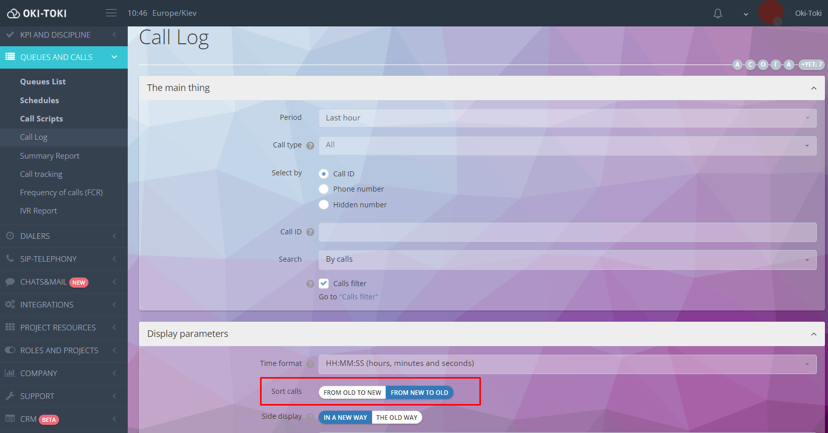 “Çağrı Kayıtları” raporu için basit ama kullanışlı bir özellik – “Yeniden eskiye” sıralama. Daha önce bunu yapmadığımıza şaşırıyorum. Çağrı filtresindeki basit bir anahtar, kayıtları yeniden eskiye göre sıralayacaktır.