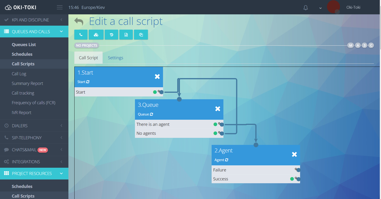 - Tüm ana unsurlar (scriptler, kuyruklar, otomatik aramalar ve entegrasyonlar) iki tıklamayla kopyalanabilir. Benzer bir projenin oluşturulması birkaç dakika sürebilir.