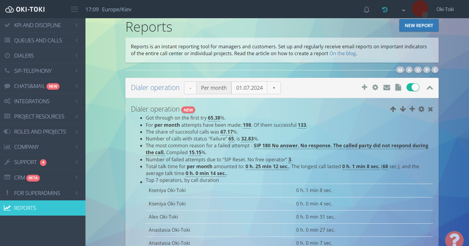 - Rapor listemizde operatörlerin disiplinini kontrol etmek için bir yer var. Yani onların sisteme bağlı olarak meşguliyet ve boş vakit durumları, ayrıca disiplin ihlalleri için önceden ayarlanmış tetikleyiciler raporlarda kaydedilir.