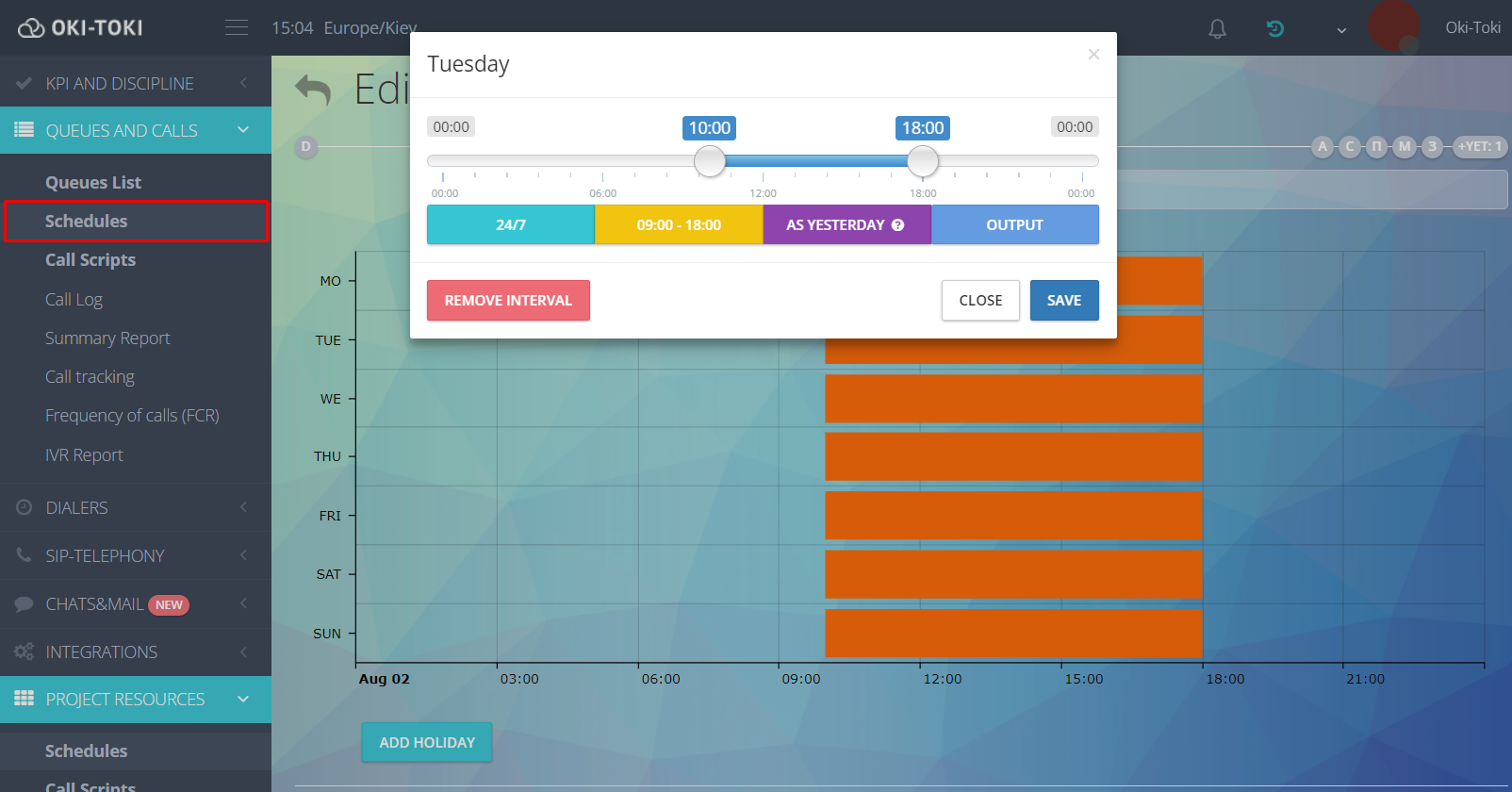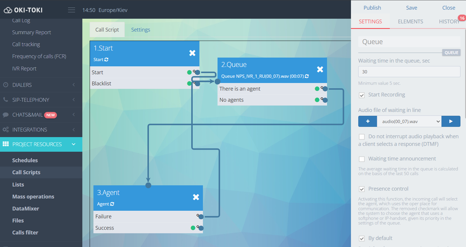 Eğer şirket, gelen çağrıları 7/24 kabul etmiyorsa – sıra ayarlarında bir program belirtmelisiniz ve arama scriptine bir aşama eklemelisiniz.