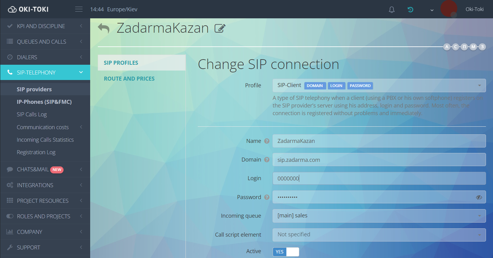 - SIP-sağlayıcının ayarlarını tamamlarken, hangi ön ekli (numaranın ilk rakamları) numaralara arama yapabileceğinizi belirtmeniz gerekmektedir (örneğin, Kazakistan numaraları “7” ile, Ukrayna numaraları “38” ile başlar).