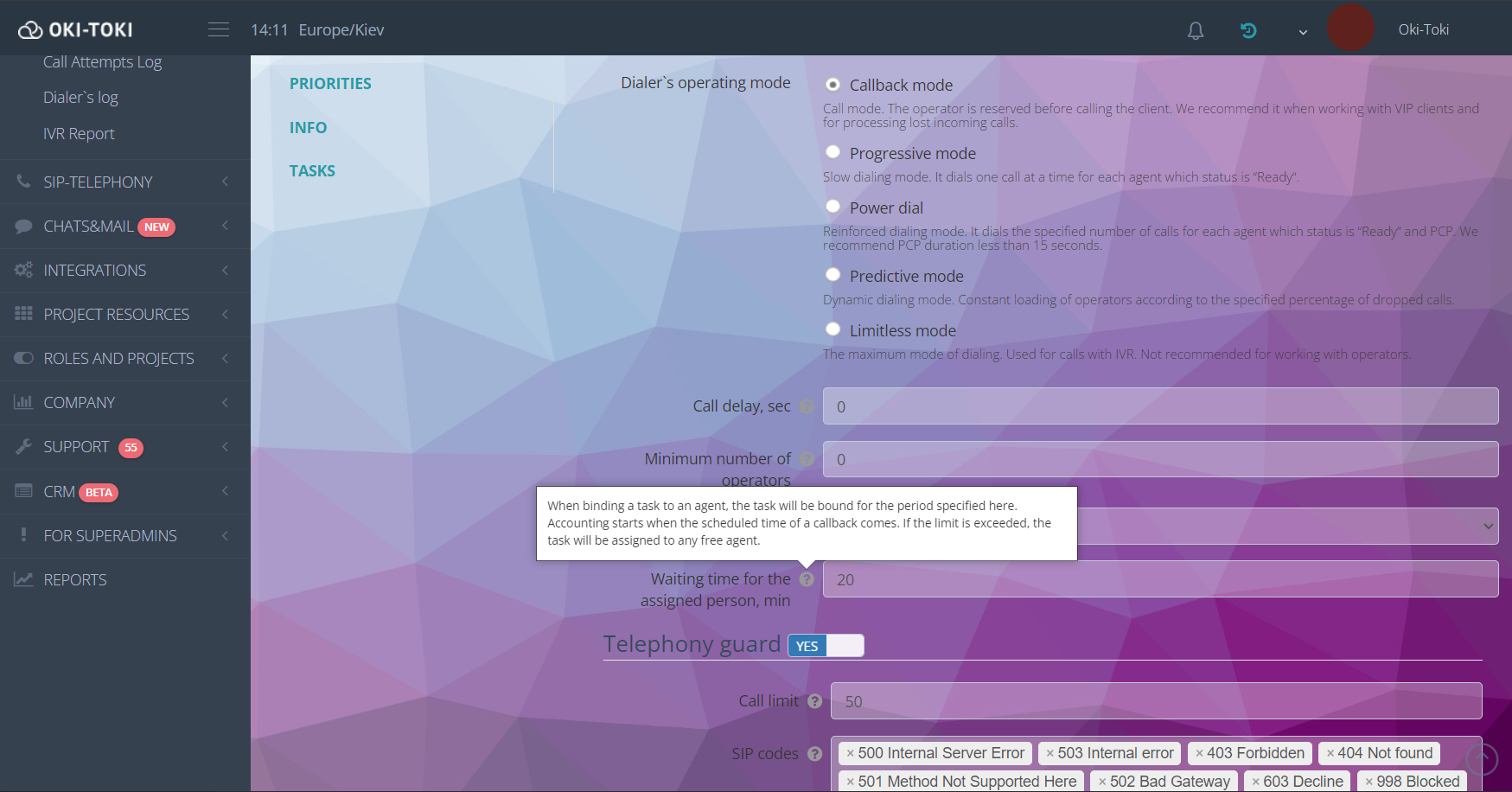 - Önemli! Sorumlu kişinin toplam bekleme süresi, eğer birleşik mod (agent ve agent grubu aynı anda) seçilmişse iki katına çıkacaktır.