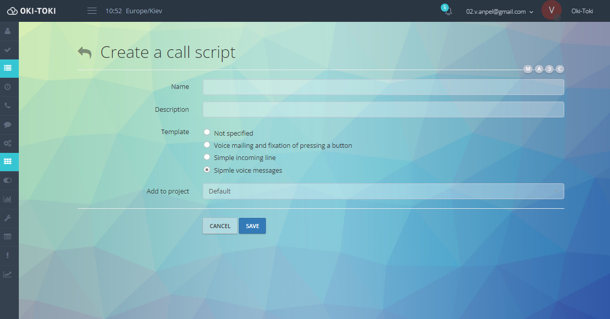- “Proje Kaynakları” menüsü, “Çağrı Scriptleri” bölümüne gidin, yeni bir script oluşturun;