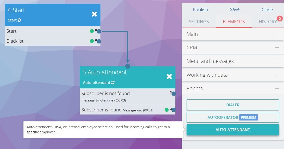 Oto-sekreter – eğer müşteri onun kişisel (iç) numarasını belirtirse, müşteriyi belirli bir şirket çalışanıyla bağlayabilen bir robot. Kişisel yönetici sunan çağrı merkezleri için uygun.