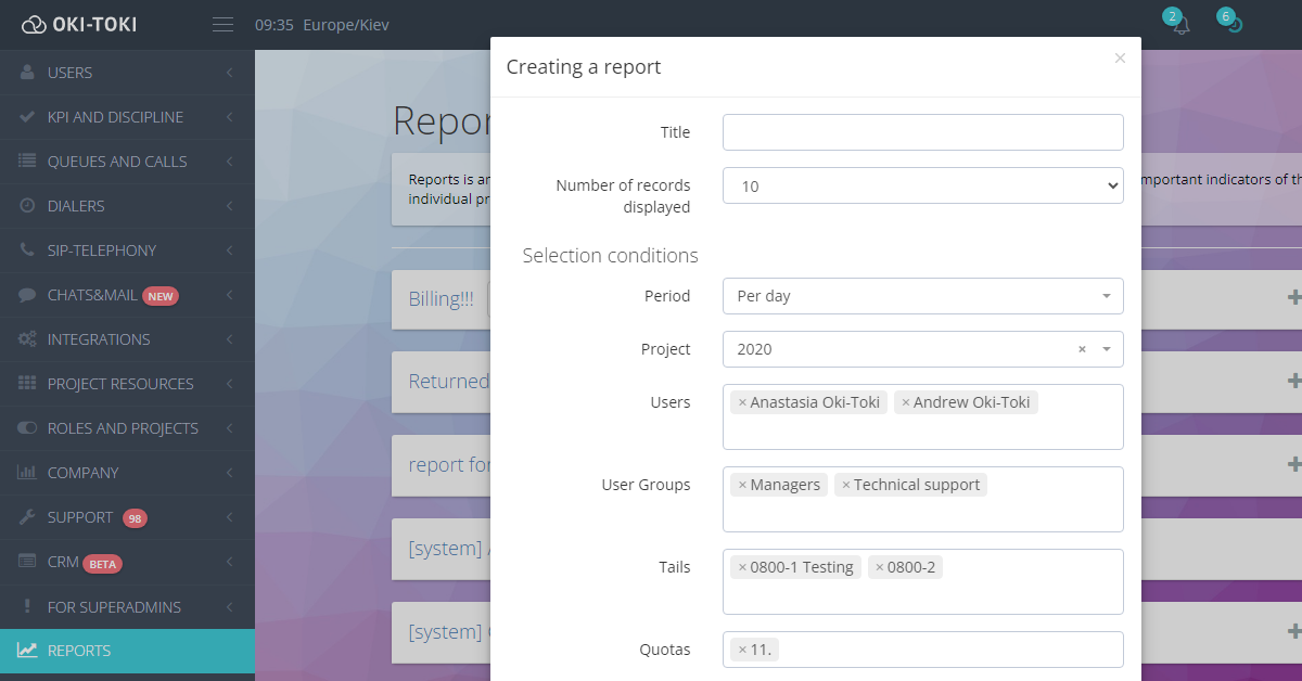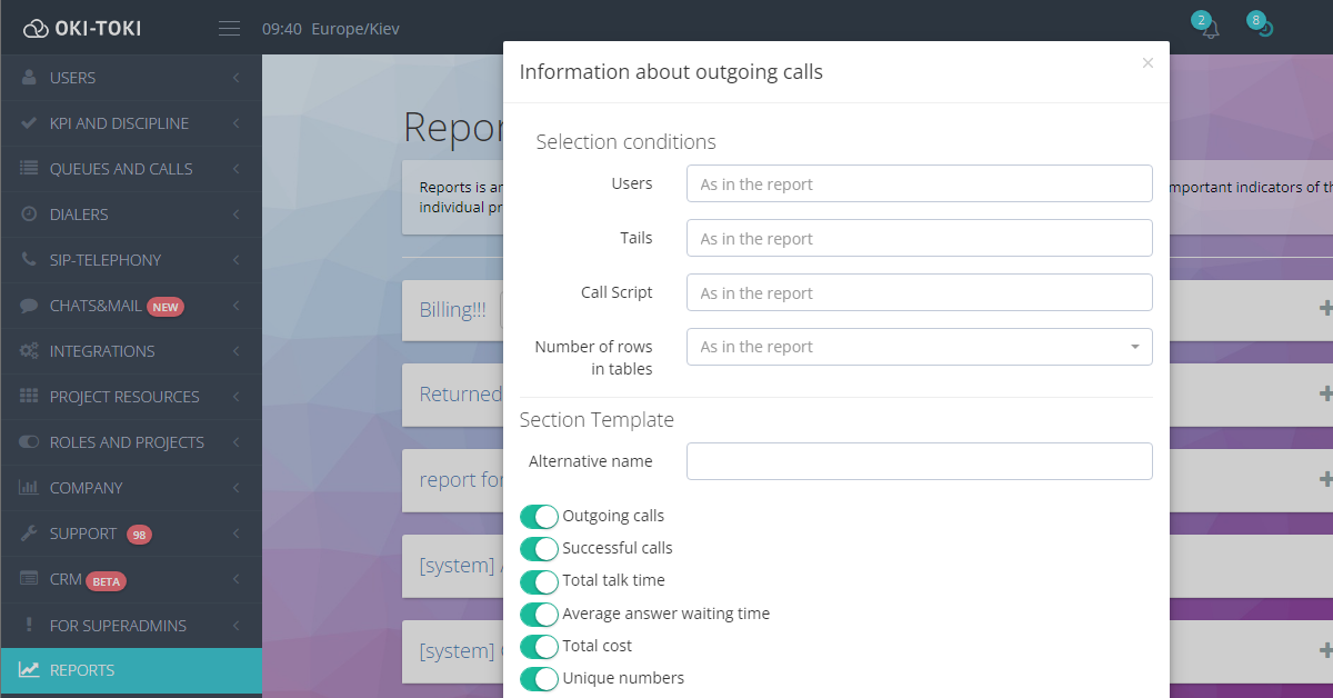 Ve son olarak, ama en az önemli olmayan avantaj – gerçekten ihtiyacınız olan bilgileri toplayarak kendi raporlarınızı oluşturabilme yeteneği. Oki-Toki’de, raporlarınızı belirli hedeflerinize ve görevlerinize uygun şekilde ayarlayabilirsiniz.